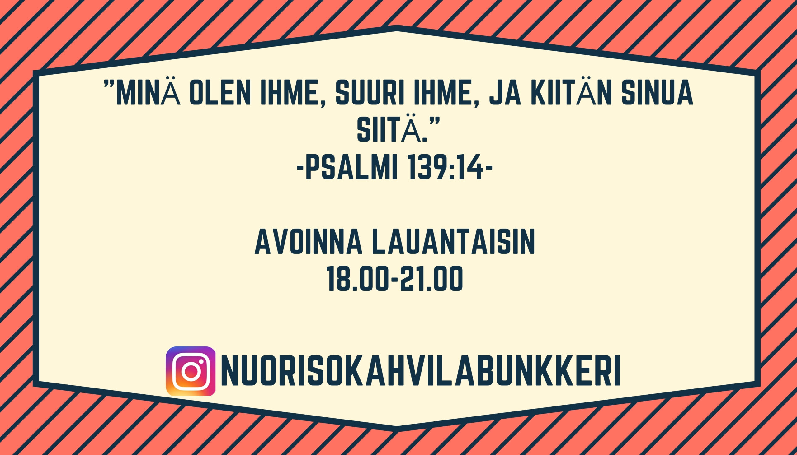 Nuorisokahvilamme on avoinna lauantaisin klo 18.00-21.00.